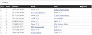 Die 2. Mannschaft spielt in der Saison 2025/26 weiterhin in der Bezirksliga. Der Link zur offizielles Seite der Bezirksliga ist hier. Neuer Mannschaftsführer ist Mathias Schröder. Unten findet man den Spielplan und die Mannschaftsaufstellung: